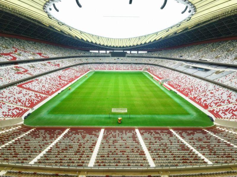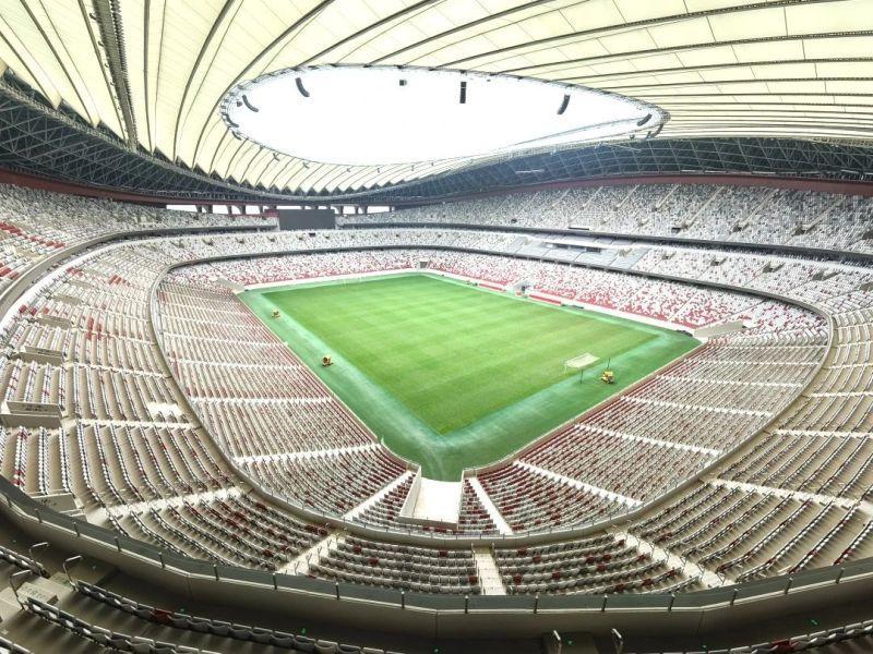 站在马鞍形看台,这里可以容下6万余人同时观赛,视觉质量(C值)均超90,还有360度环绕屏幕与FIFA标准音响构成声光电交响,配合瞬时启闭的防眩光LED系统,无论现场观赛或高清转播皆能呈现完美画质。